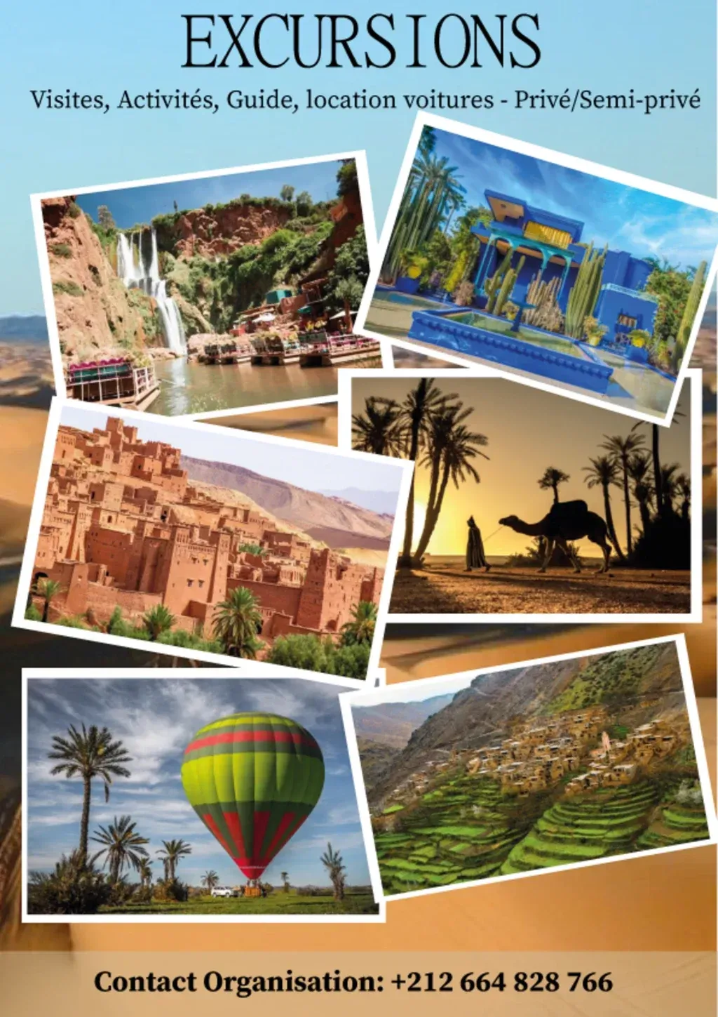 Nous organisons les excursions de votre choix en collaboration avec des partenaires reconnus par le ministère du Tourisme, et au meilleur prix. Pour réserver ou simplement pour plus d'informations, renseignez-vous à la réception ; nous nous ferons un plaisir de préparer votre excursion.
