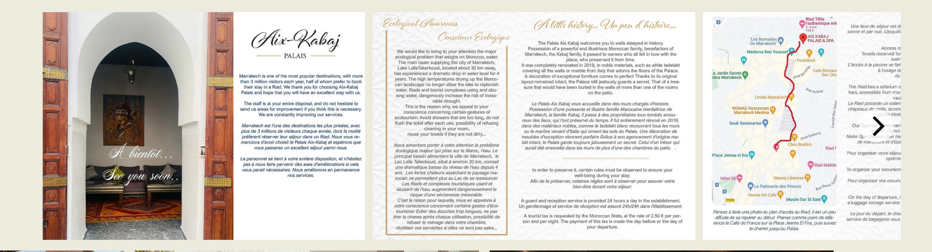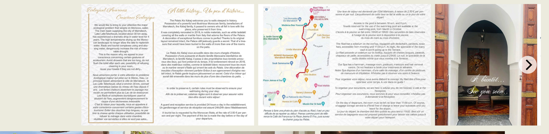 L'histoire du Palais Aix Kabaj & Spa commence par la volonté de redonner vie à un magnifique joyau du patrimoine architectural de Marrakech. À l'origine une somptueuse résidence privée nichée au cœur de la médina historique, notre propriété a subi une transformation minutieuse et soignée.